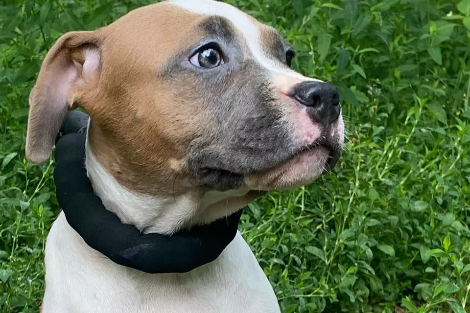 Черно-белая девочка американского стаффордаВозраст: 6 месяцев