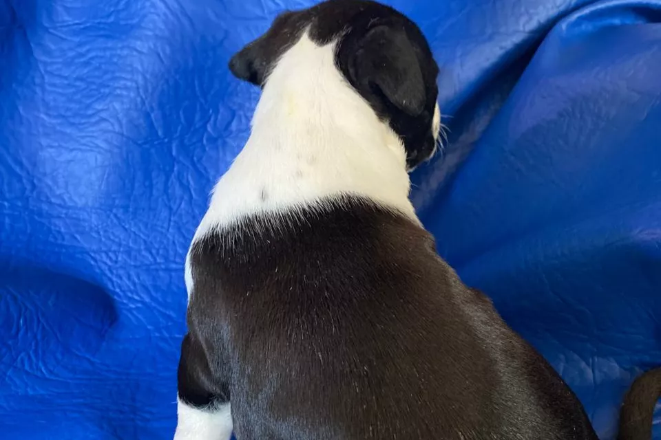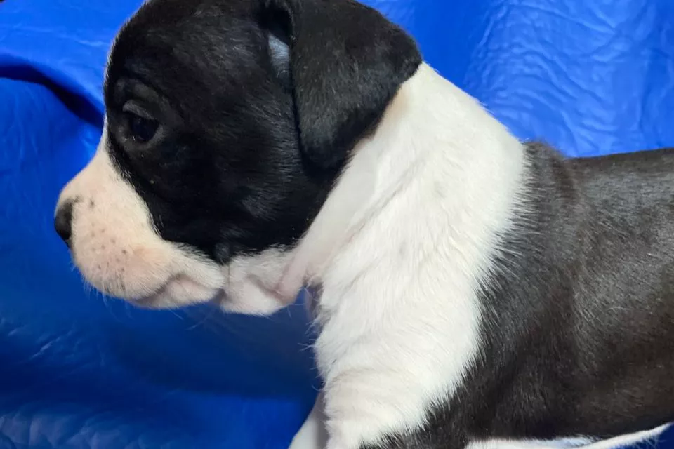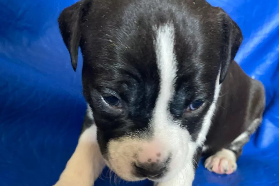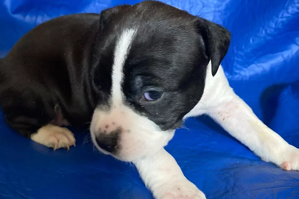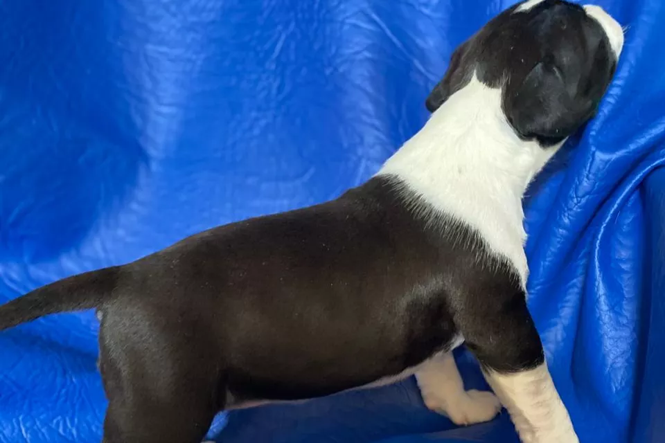 В продаже черно-белая девочка американского стаффордширского терьера.