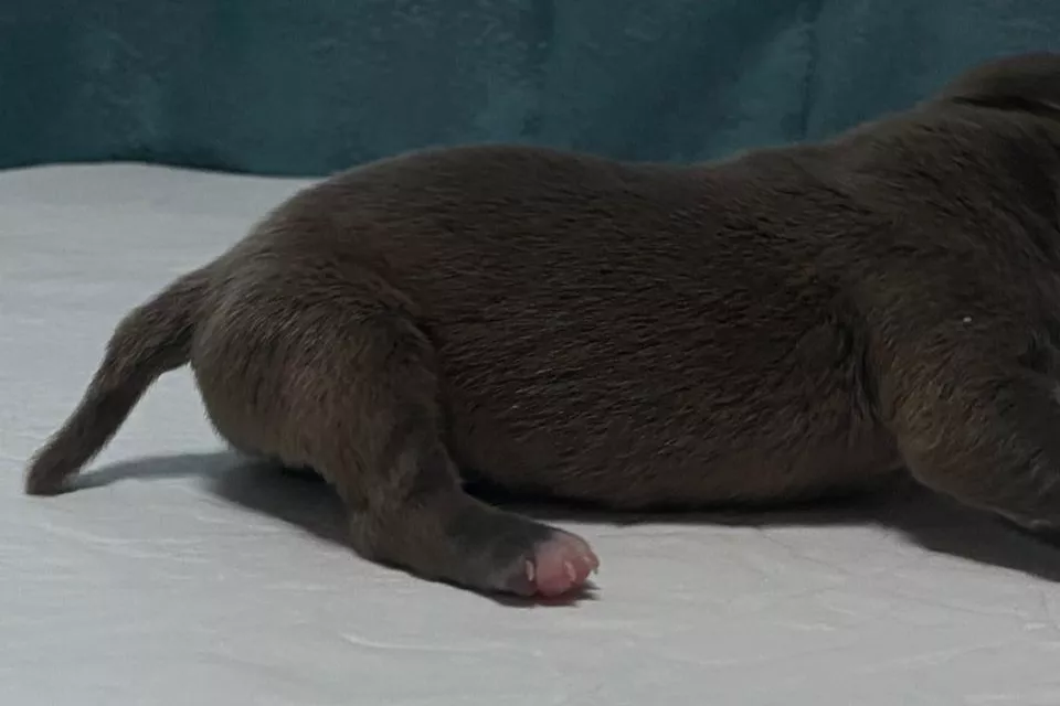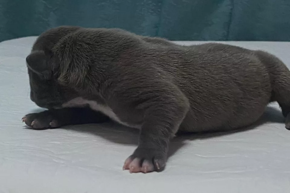 Предлагается к бронированию голубая девочка американского стаффордширского терьера. Рожден 26 августа 25 года. Девочка имеет залом хвоста.